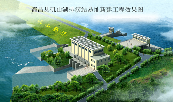 為配合江西省都昌縣打造“城依水建、水在城中、山水相依”的宜居園林城市建設重點項目——濱水西區開發的需要,都昌縣磯山湖排澇站從磯山湖上壩易址磯山湖下壩,新建工程由電排站和自排閘組成,泵站裝機容量4×800kw,治澇標準采用10年一遇暴雨,治澇面積44平方公里,是原磯山湖上壩排澇站排澇能力的2倍,屬中型排澇站。